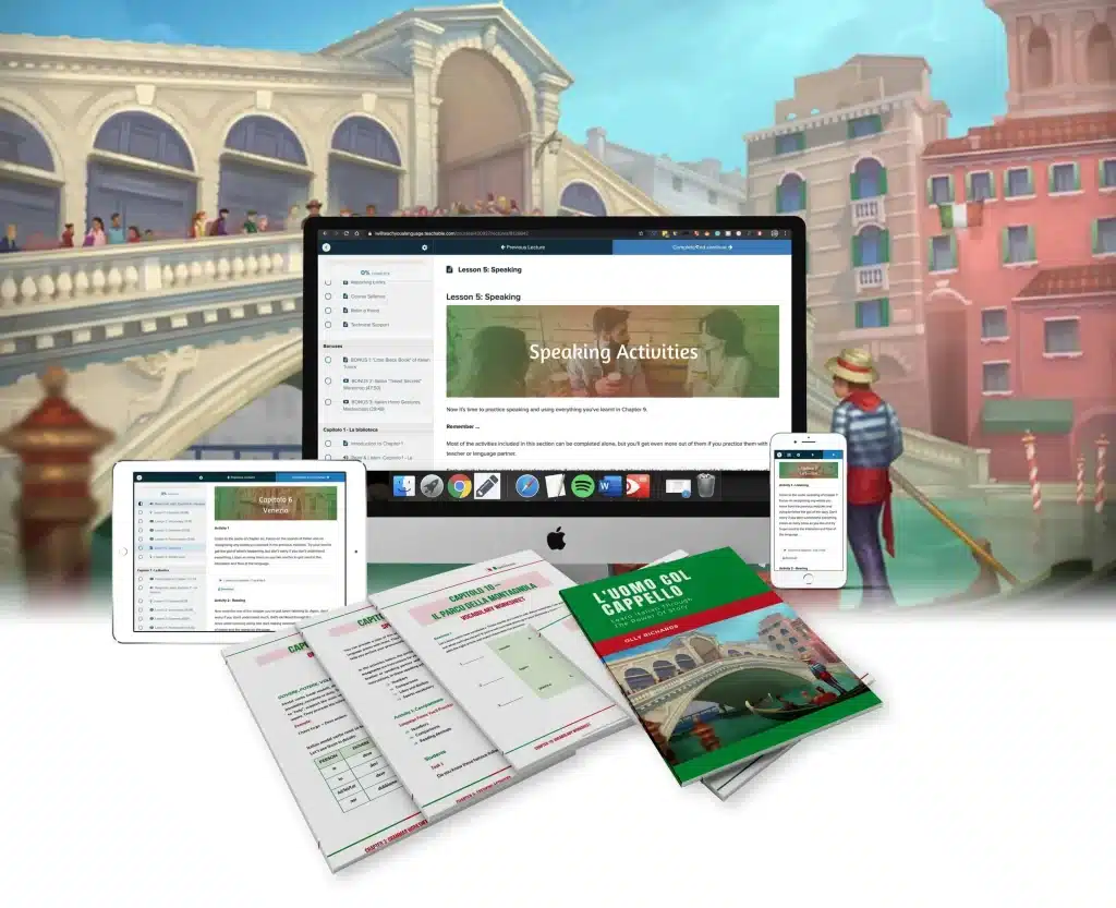 The courses are centered around a story that unfolds as you progress through each lesson. Along the way, you’ll learn Italian vocabulary and grammar, as well as practice listening and speaking in Italian based on where you are in the story.